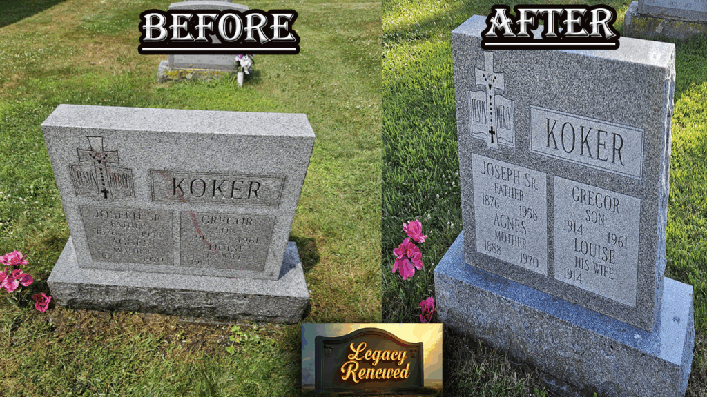 Here are samples of recently performed cleaning and restorations. It is an honor and a privilege to work on these headstones for our satisfied customers.